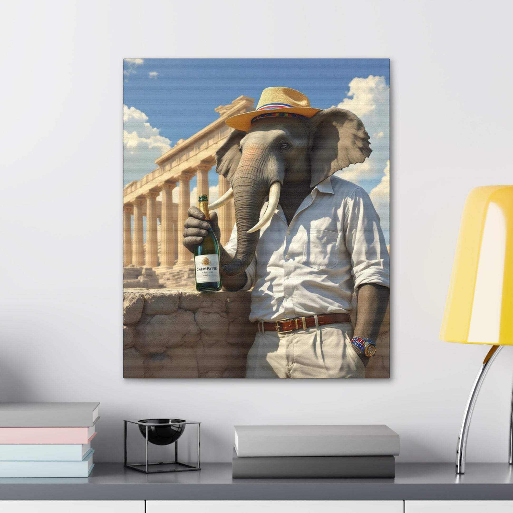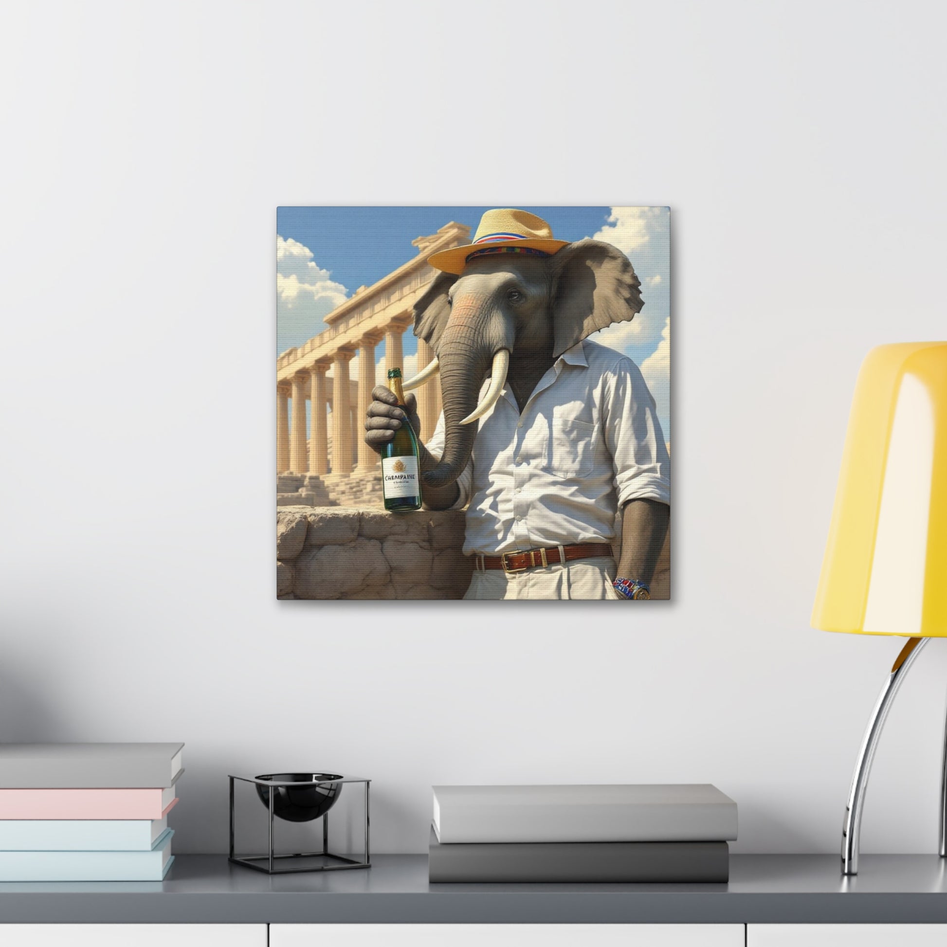 Get ready to jazz up your walls with this wild and wacky masterpiece! Picture this: a Havana elephant toasting the wonders of hostorical Athens.This isn't your average pachyderm - it's the architecture lover of all things Athenian." The closed-back design means no peeking behind the scenes - this elephant's got nothing to hide!With its closed MDF backing and patented solid support face, this canvas is tougher than an elephant's hide. It's the art equivalent of a bouncer – keeping your walls looking fresh and funky for years to come.