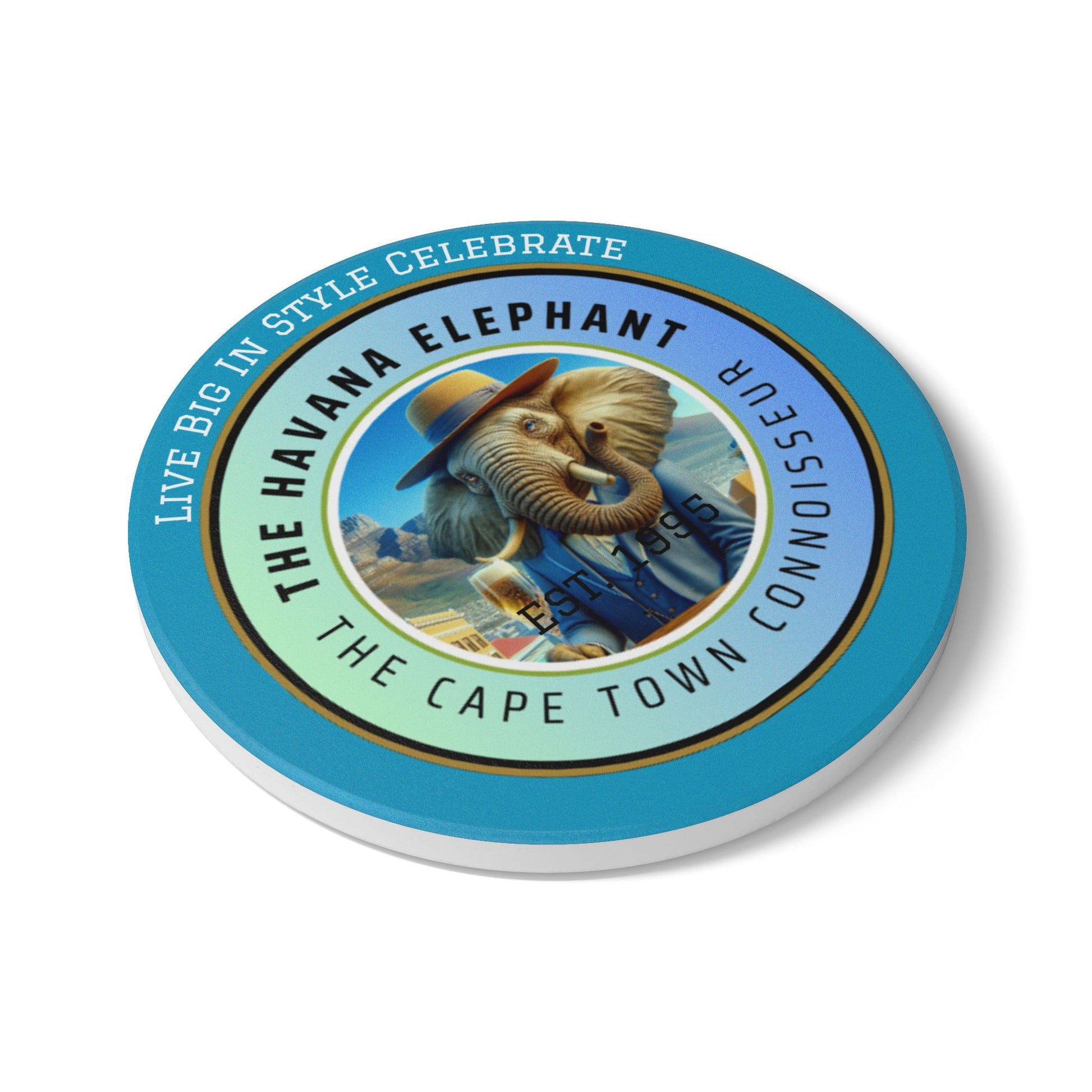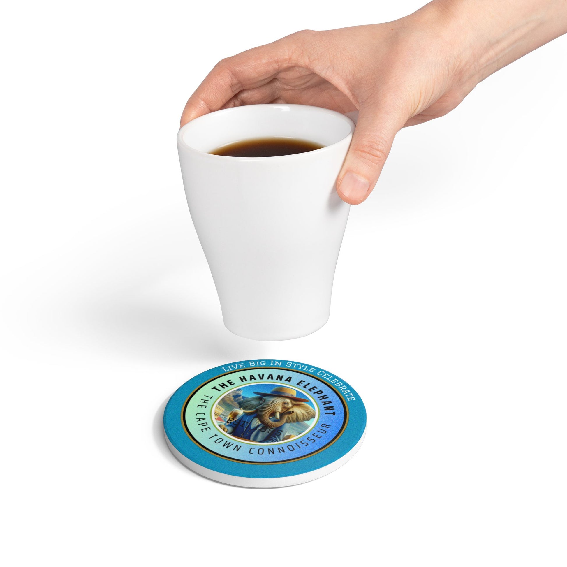 Elephant Themed Ceramic Coaster, The Cape Town Connoissuer.Unique Home Decor, Gift for Animal Lovers, Celebratory Coaster for Parties, Kitchen Table Accent