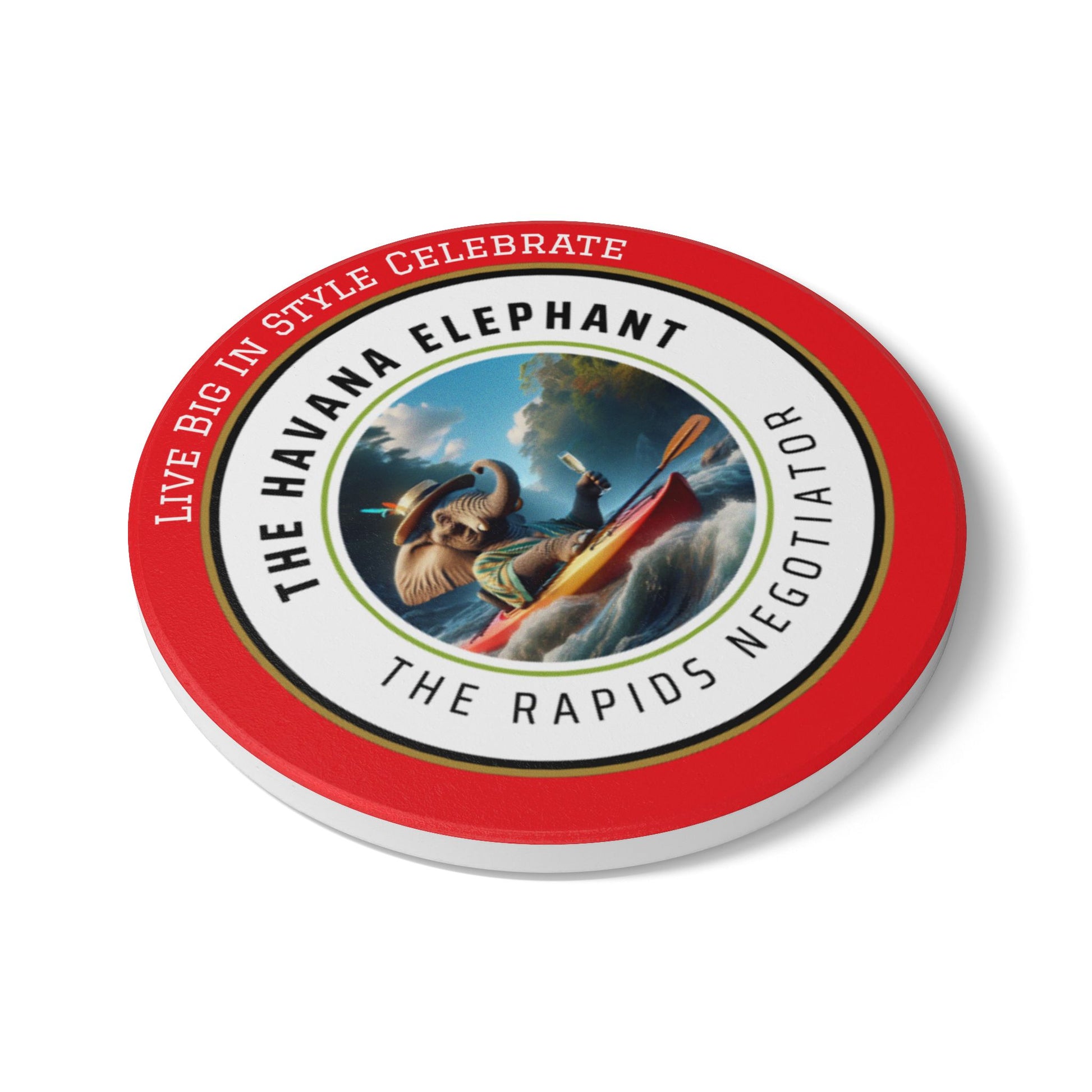 Elephant Themed Ceramic Coaster Set, The Rapids Negotiator. Unique Home Decor, Gift for Animal Lovers, Celebratory Coaster for Parties, Kitchen Table Accent