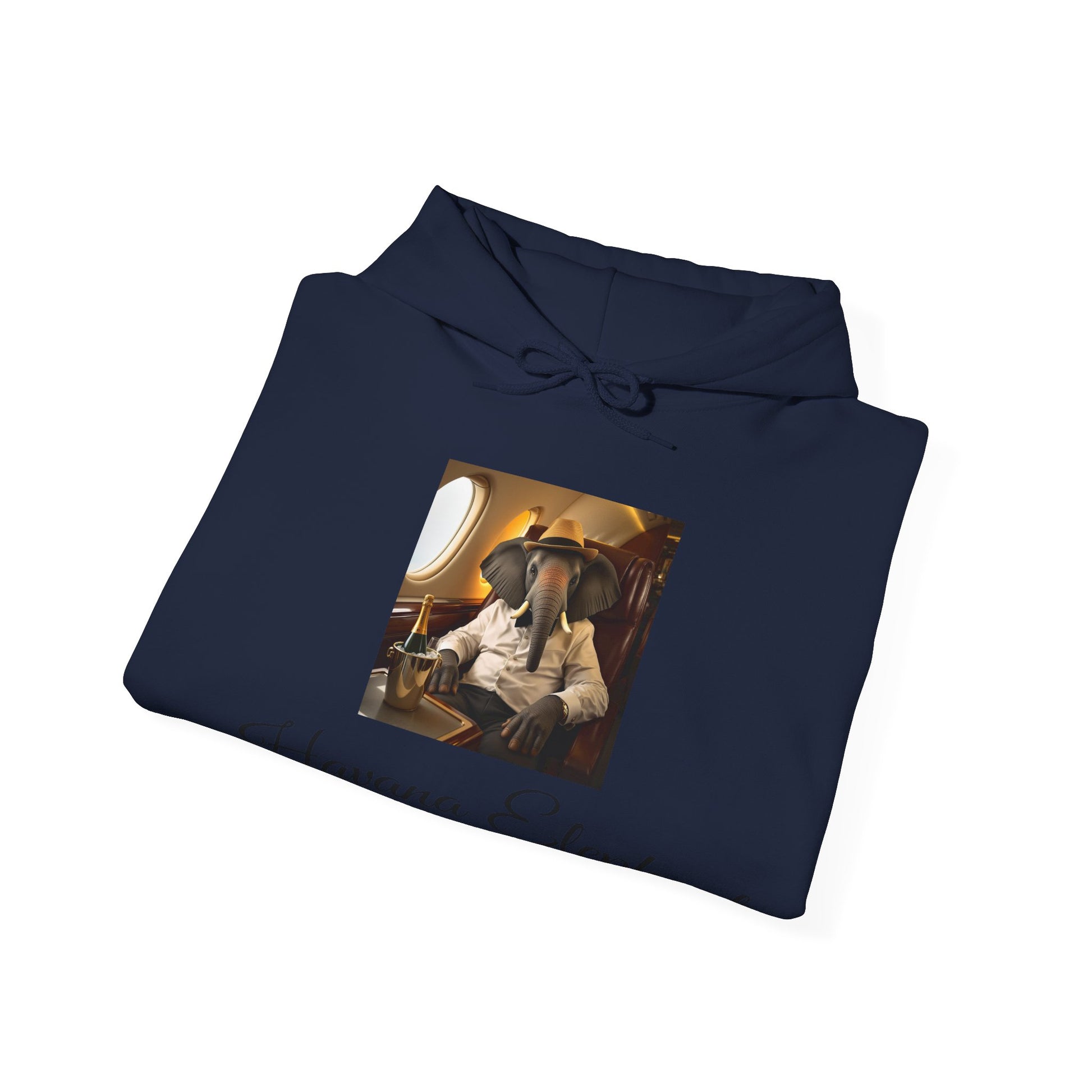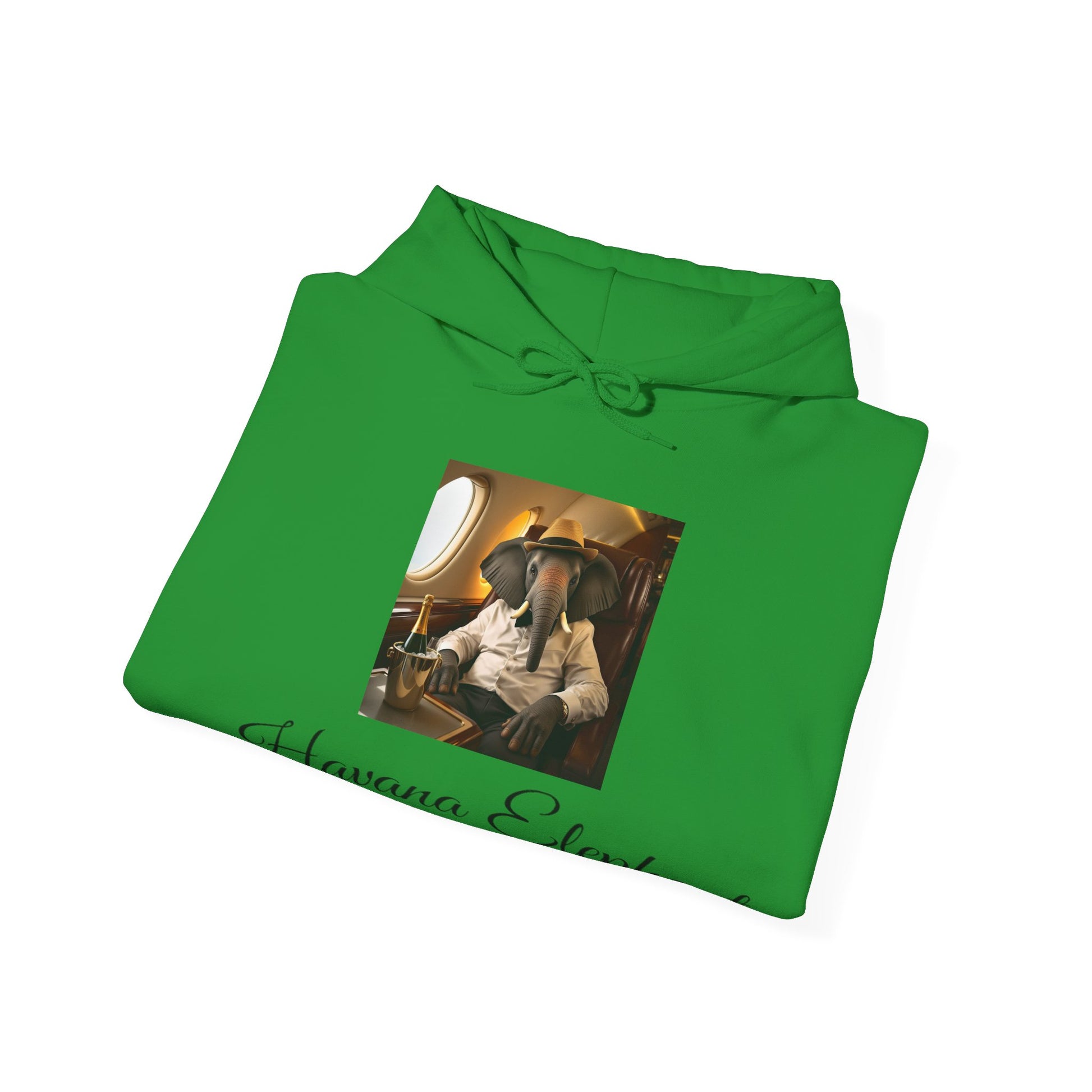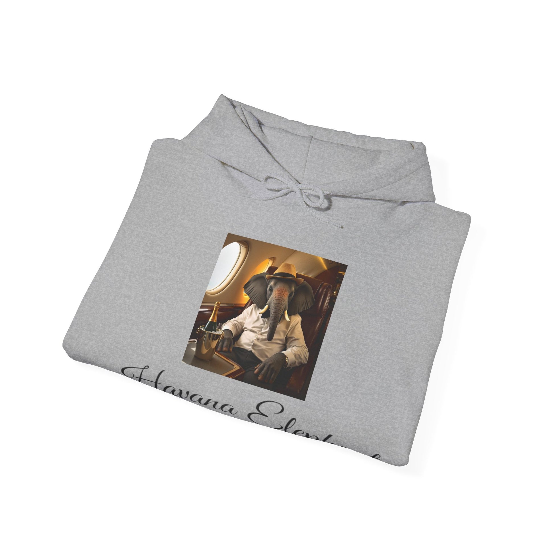 Havana Elephant themed unisex heavy blend hooded sweatshirt is relaxation itself. A statement to the World and yourself that life is to be lived as large as an Elephant with the style of a Havana hat and always be celebrated with a glass of something bubbly. Made with a thick blend of cotton and polyester, it feels plush, soft and warm, a perfect choice for ultimate comfort. In the front, the spacious kangaroo pocket adds daily practicality while the hood's drawstring is the same color as the base sweater for extra style points. .: 50% cotton, 50% polyester (fiber content may vary for different colors) .: Medium-heavy fabric (8.0 oz/yd² (271 g/m²)) .: Classic fit