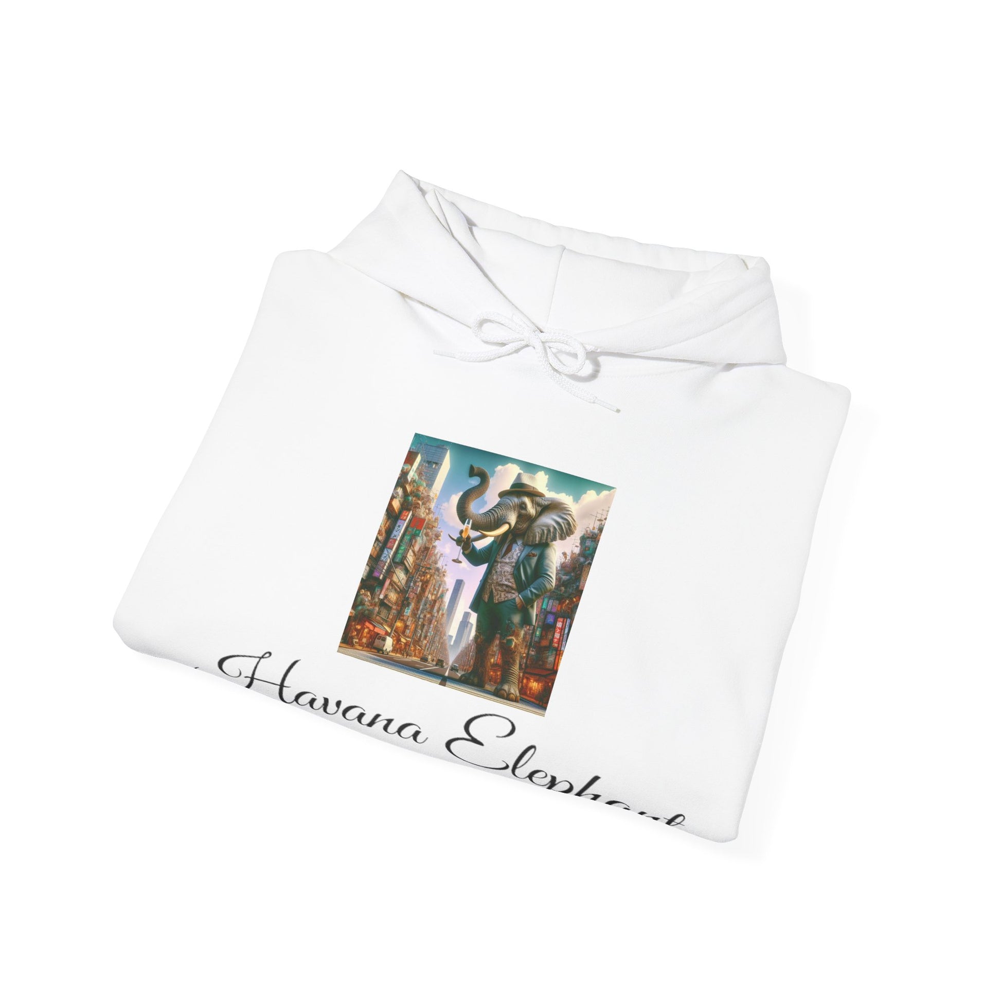 Raise a glass with this Havana Elephant themed unisex heavy blend hooded sweatshirt, is relaxation itself. A statement to the World and yourself that life is to be lived as large as an Elephant with the style of a Havana hat and always be celebrated with a glass of something bubbly. Made with a thick blend of cotton and polyester, it feels plush, soft and warm, a perfect choice for any day. In the front, the spacious kangaroo pocket adds daily practicality while the hood's drawstring is the same color as the base sweater for extra style points. .: 50% cotton, 50% polyester (fiber content may vary for different colors) .: Medium-heavy fabric (8.0 oz/yd² (271 g/m²)) .: Classic fit
