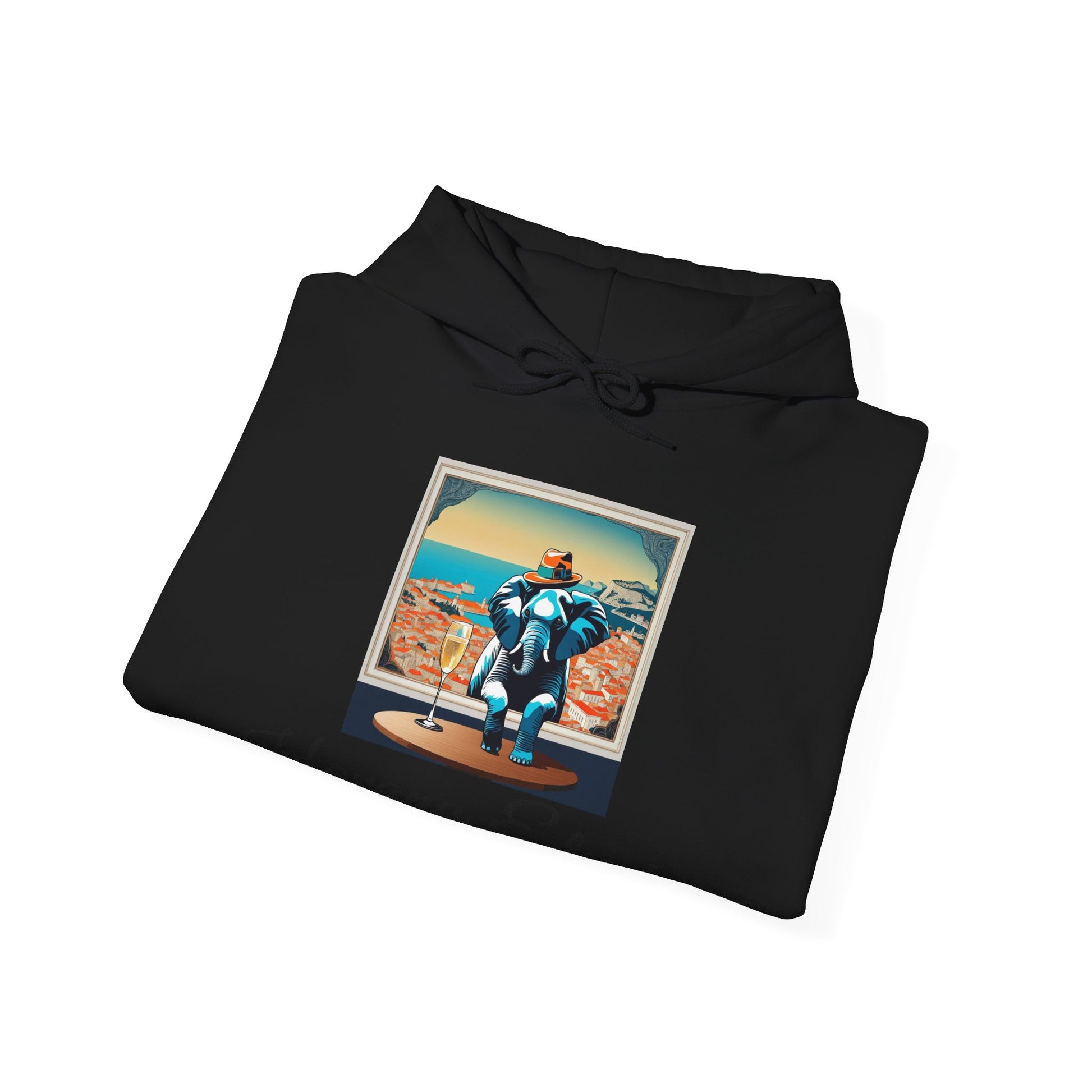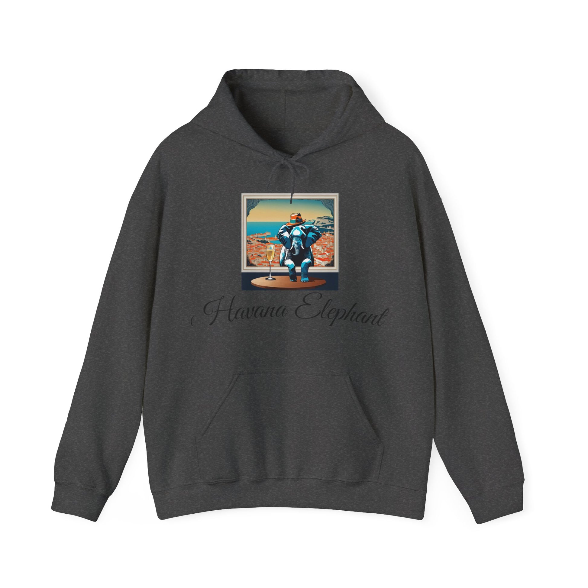 Havana Elephant themed unisex heavy blend hooded sweatshirt is relaxation itself. A statement to the World and yourself that life is to be lived as large as an Elephant with the style of a Havana hat and always be celebrated with a glass of something bubbly.