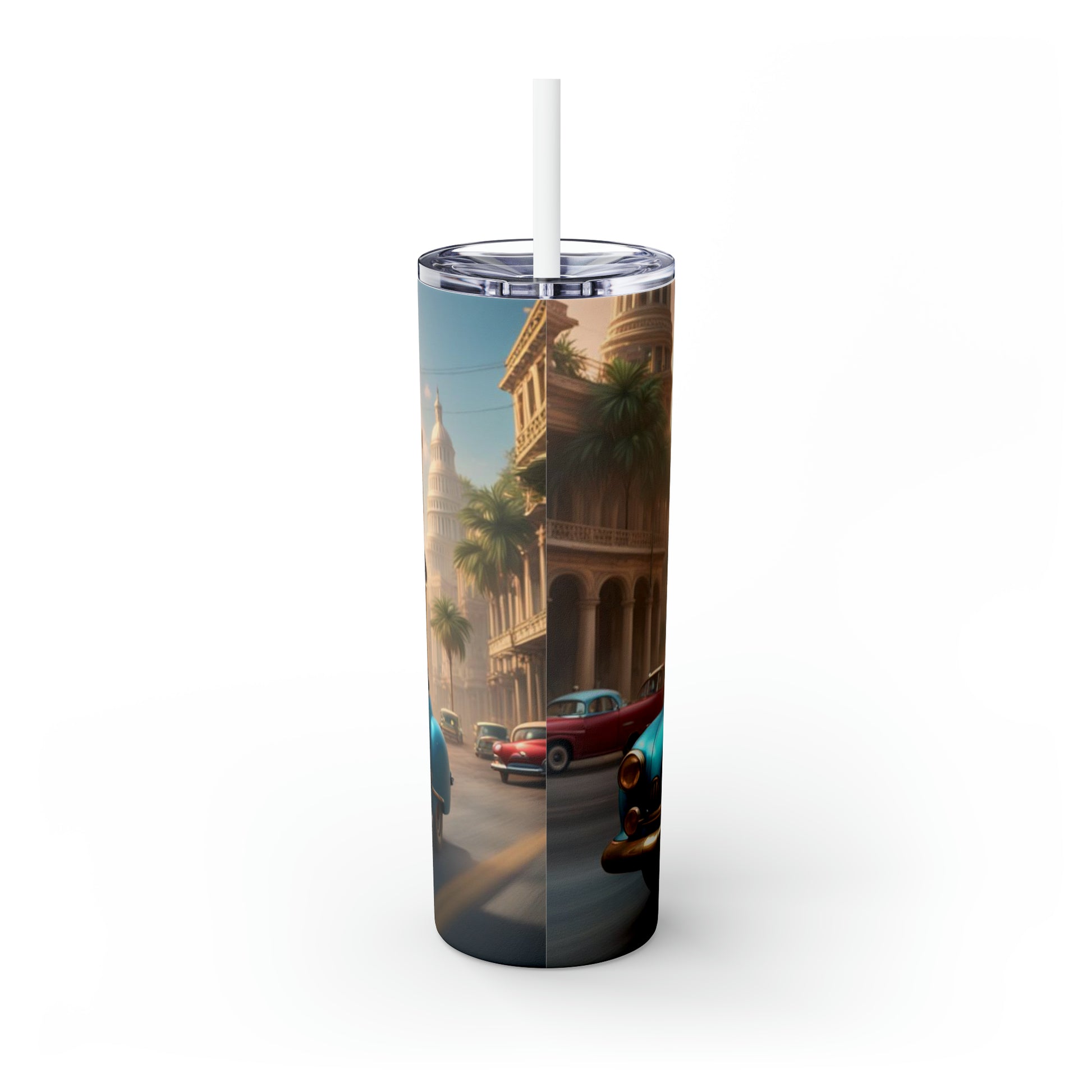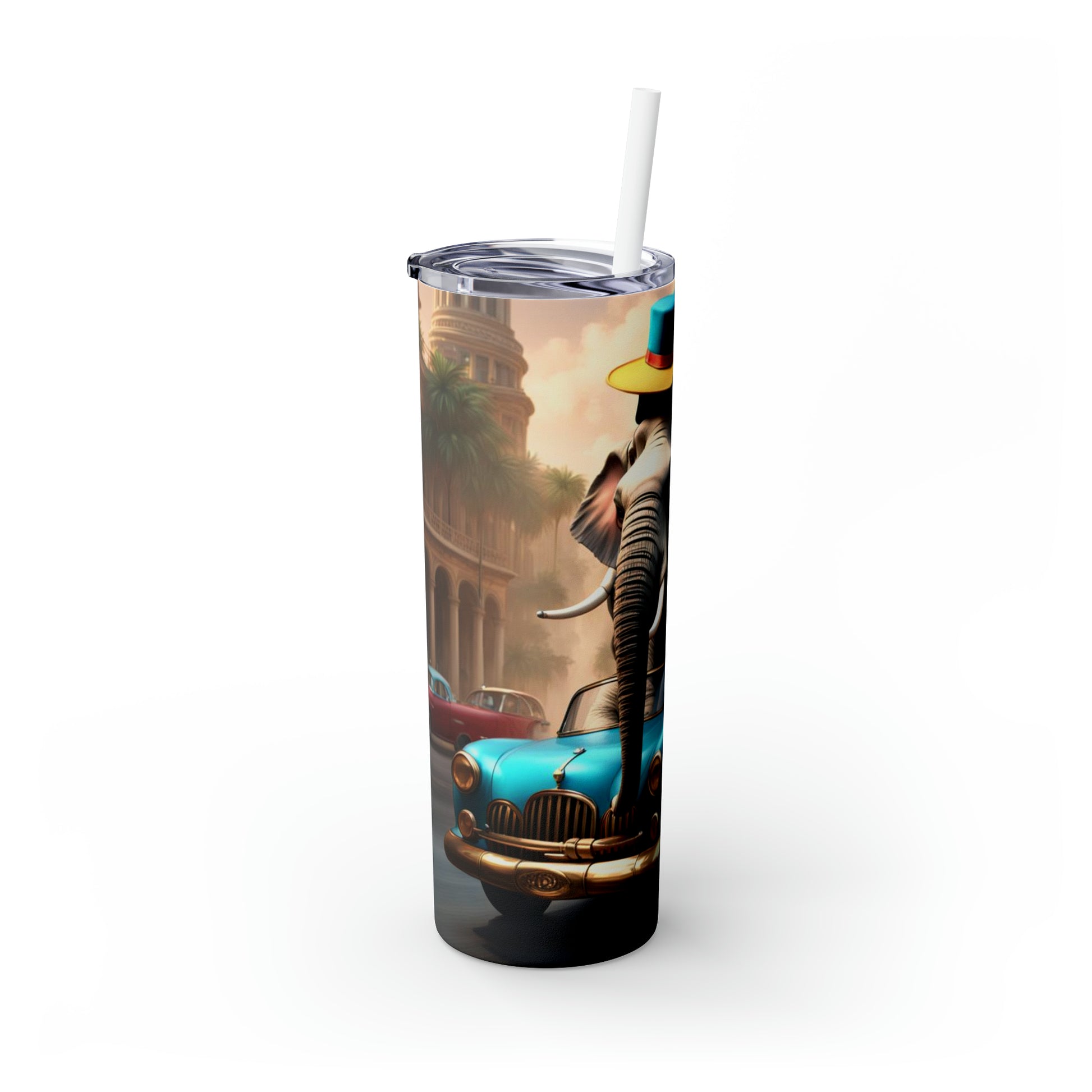 Havana Elephant themed Skinny Tumbler with Straw, 20oz