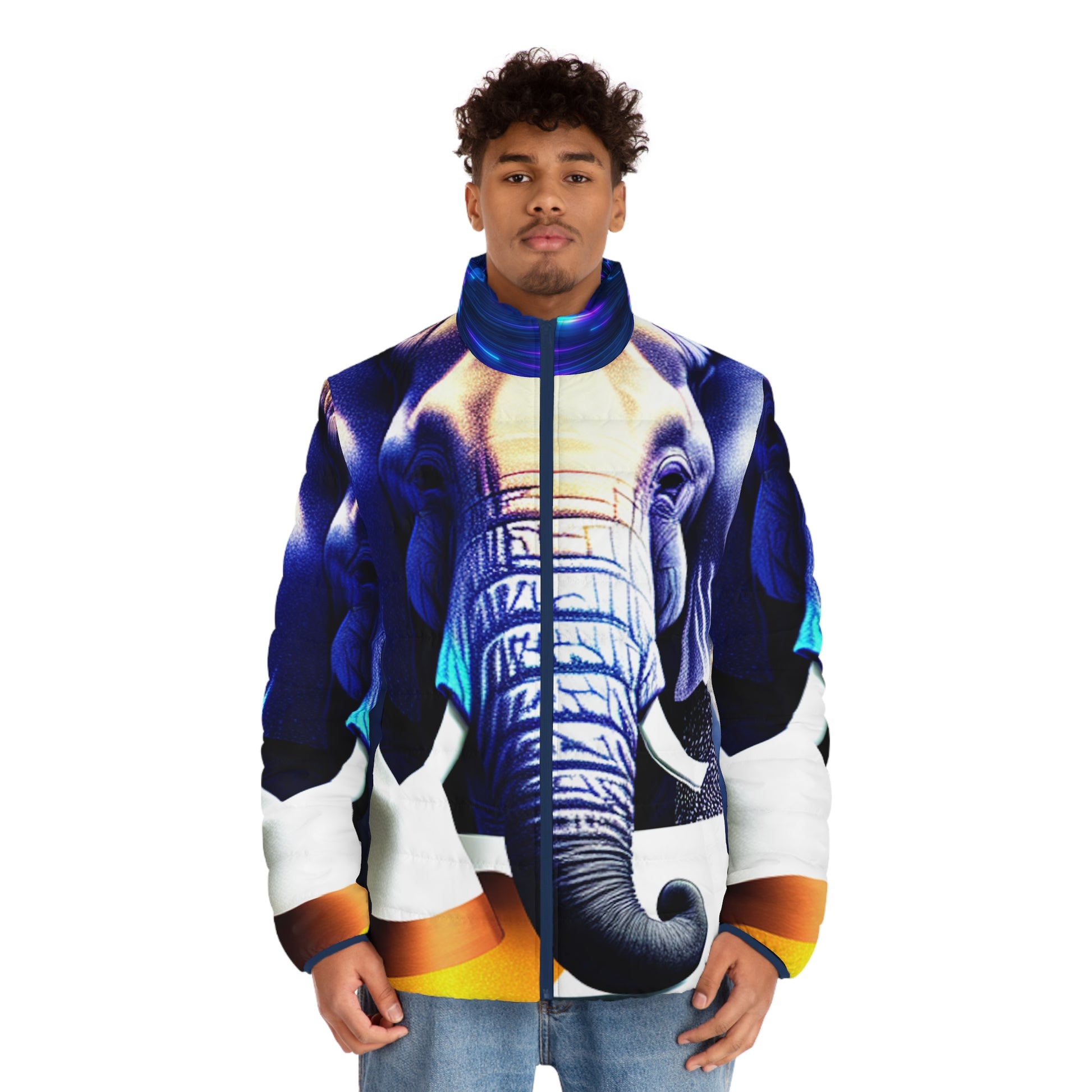 A stunning puffer jacket themed beautifully within the Havana Elephant artwork range. A grade-A upgrade to any wardrobe. It comes with a stand-up collar, quilted lining, black cuff lining, and two spacious side pockets for added practicality. Each jacket is lightweight and super soft to the touch. Choose between two zipper color choices: black or dark blue.