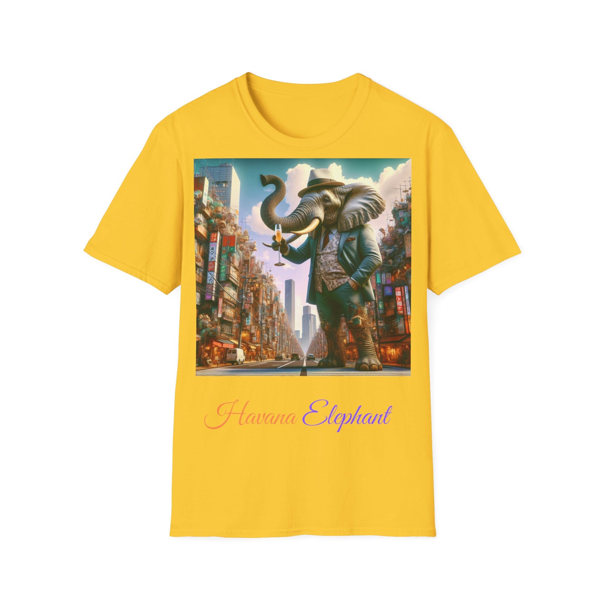 A super cool soft style Havana elephant branded t-shirt that is perfect for all year round wear. This unisex t-shirt offers a classic fit with a crew neckline, ideal for any occasion, formal or semi-formal. Made from durable and smooth fabric with no side seams, ribbed knit collar, and shoulder tape for stability. Relevant to those looking for a comfortable and stylish t-shirt.