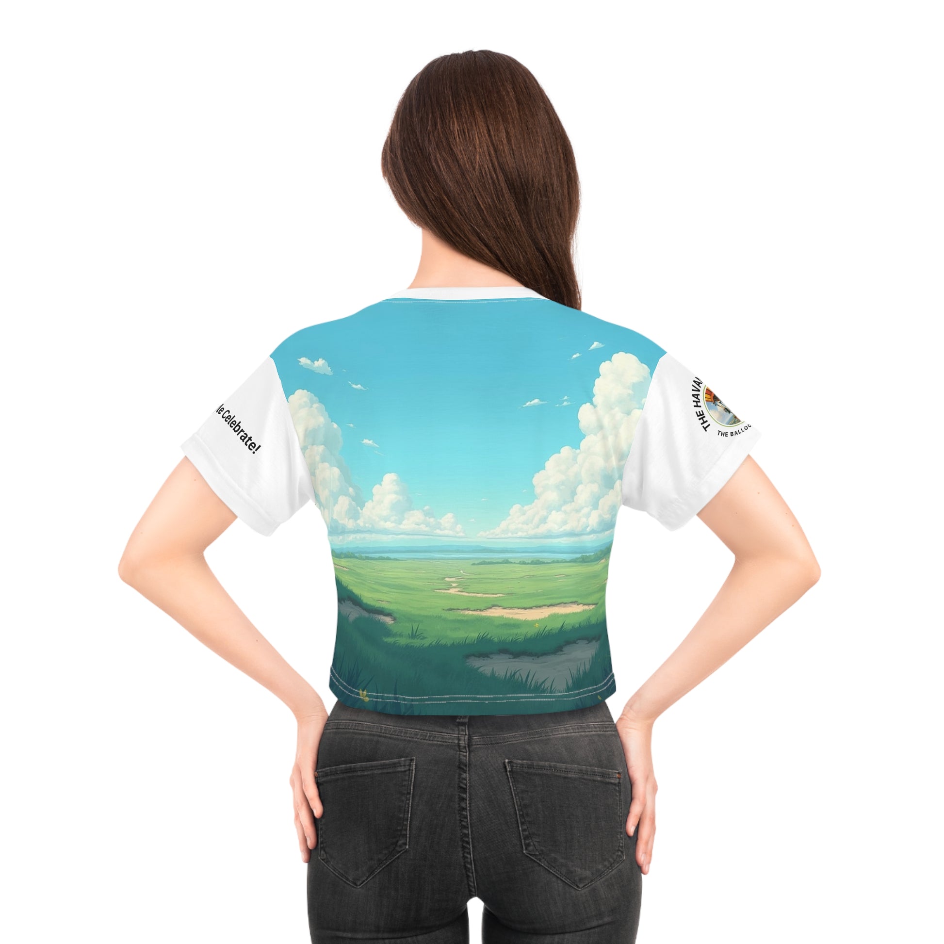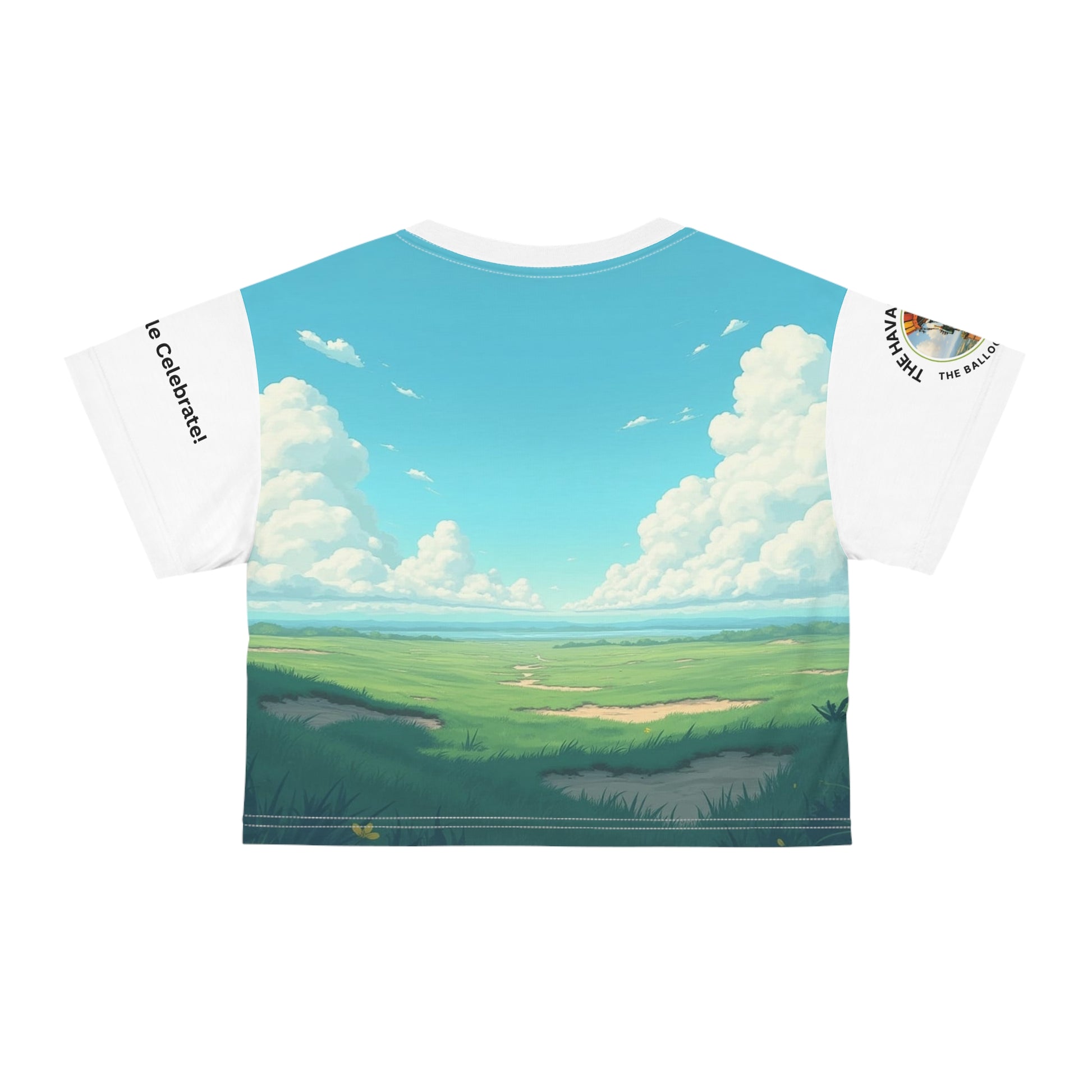 A vibrant Crop Tee featuring an image of an Havana Elephant - The Balloon Voyager. Perfect for those who love unique and playful designs. Ideal for summer outings, casual hangouts, and music festivals. This Crop Tee is relevant for animal lovers, festival-goers, and those who enjoy quirky fashion. Perfect for summer holidays, music festivals, and casual hangouts.